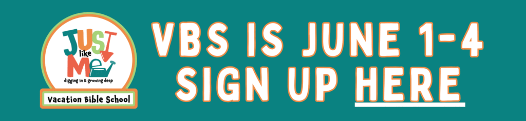 Children ages 3 through rising 8th graders are invited to VBS in June! We play games, hear Bible stories, sing, enjoy snacks, serve in outreach, and make art together.